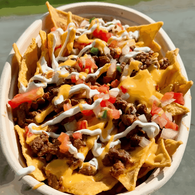 A delicious, savory street-style dish served warm and bursting with bold, traditional flavors. Perfect for snacking or as a flavorful side.